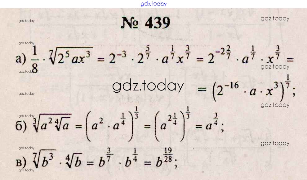 На страницах сайта gdz.today вы найдете учебный и вспомогательный материал, направленный на улучшения знаний школьной программы. ГДЗ - онлайн мир знаний Решения к упражнениям 439 Учебнику по Алгебре для 10-11 класса Колмогоров, Абрамов Просвещение 2008