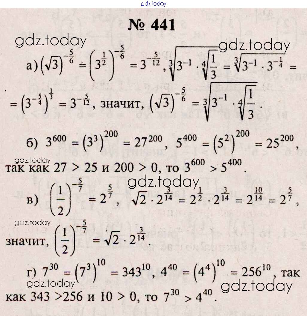 На страницах сайта gdz.today вы найдете учебный и вспомогательный материал, направленный на улучшения знаний школьной программы. ГДЗ - онлайн мир знаний Решения к упражнениям 441 Учебнику по Алгебре для 10-11 класса Колмогоров, Абрамов Просвещение 2008
