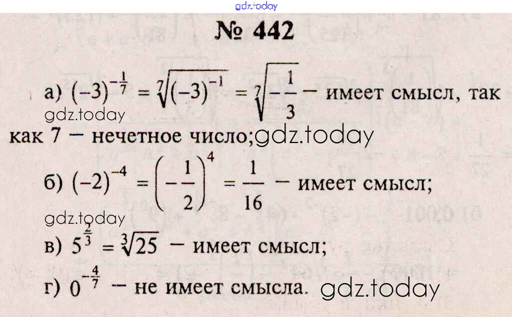На страницах сайта gdz.today вы найдете учебный и вспомогательный материал, направленный на улучшения знаний школьной программы. ГДЗ - онлайн мир знаний Решения к упражнениям 442 Учебнику по Алгебре для 10-11 класса Колмогоров, Абрамов Просвещение 2008