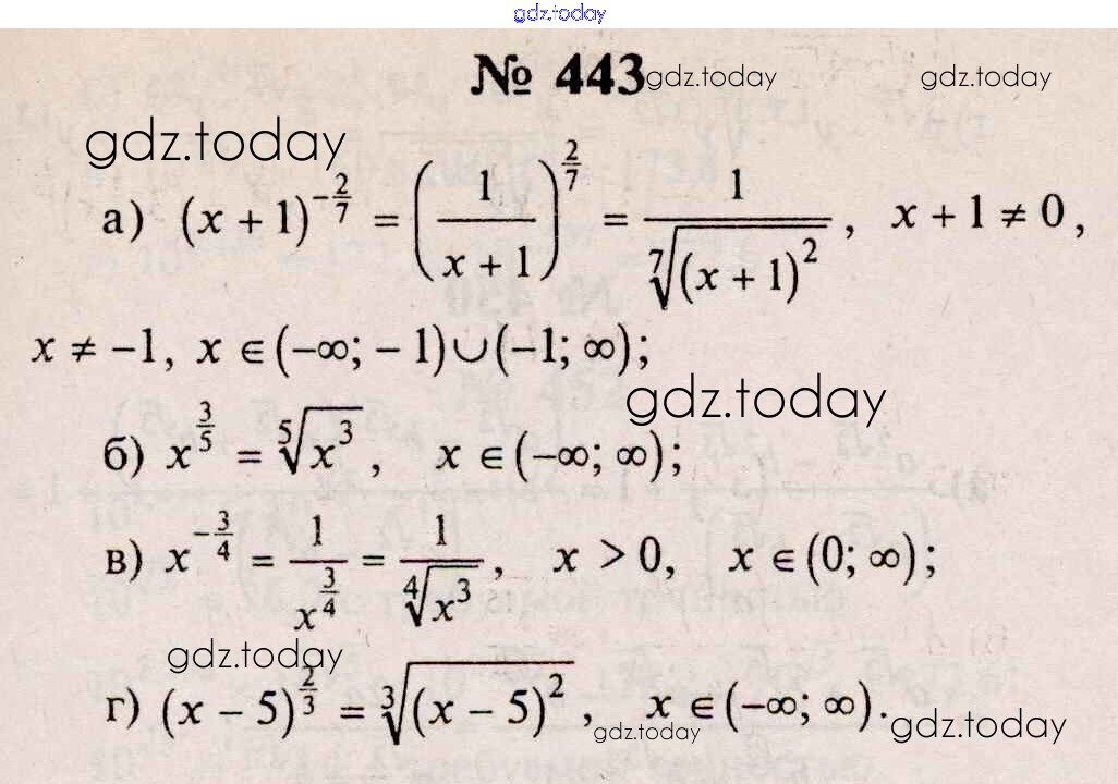 На страницах сайта gdz.today вы найдете учебный и вспомогательный материал, направленный на улучшения знаний школьной программы. ГДЗ - онлайн мир знаний Решения к упражнениям 443 Учебнику по Алгебре для 10-11 класса Колмогоров, Абрамов Просвещение 2008