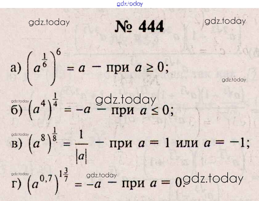 На страницах сайта gdz.today вы найдете учебный и вспомогательный материал, направленный на улучшения знаний школьной программы. ГДЗ - онлайн мир знаний Решения к упражнениям 444 Учебнику по Алгебре для 10-11 класса Колмогоров, Абрамов Просвещение 2008