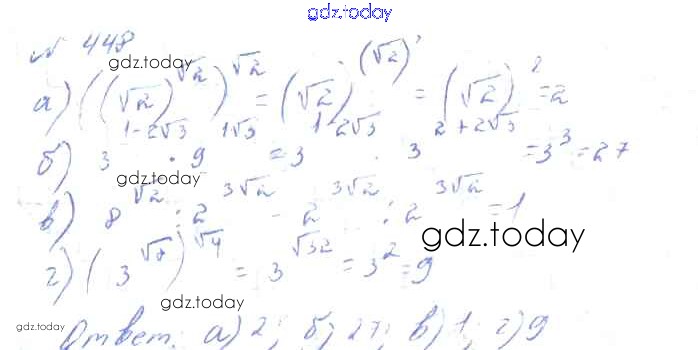 На страницах сайта gdz.today вы найдете учебный и вспомогательный материал, направленный на улучшения знаний школьной программы. ГДЗ - онлайн мир знаний Решения к упражнениям 448 Учебнику по Алгебре для 10-11 класса Колмогоров, Абрамов Просвещение 2008
