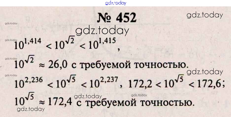 На страницах сайта gdz.today вы найдете учебный и вспомогательный материал, направленный на улучшения знаний школьной программы. ГДЗ - онлайн мир знаний Решения к упражнениям 452 Учебнику по Алгебре для 10-11 класса Колмогоров, Абрамов Просвещение 2008