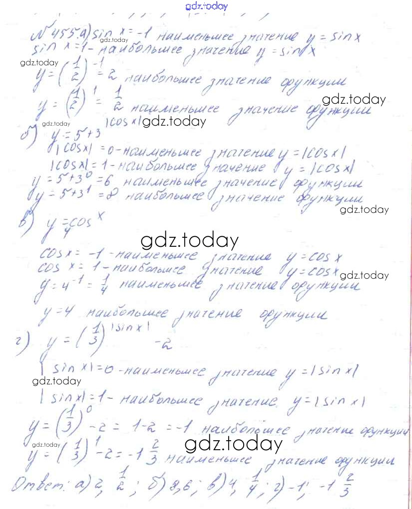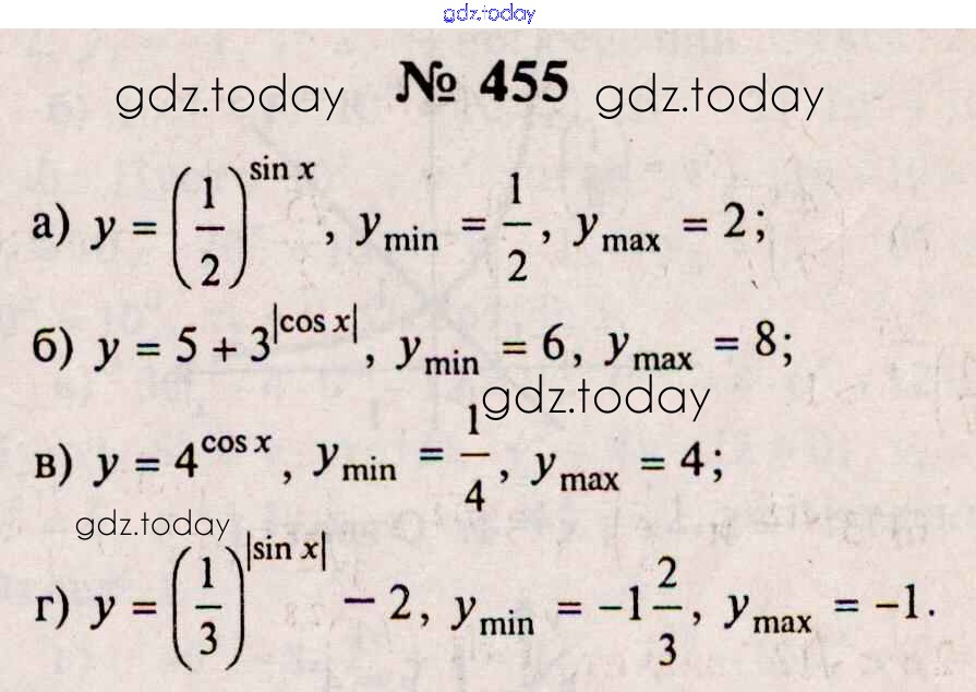 Ответы к Решения к упражнениям 455 Учебнику по Алгебре для 10-11 класса Колмогоров, Абрамов Просвещение 2008