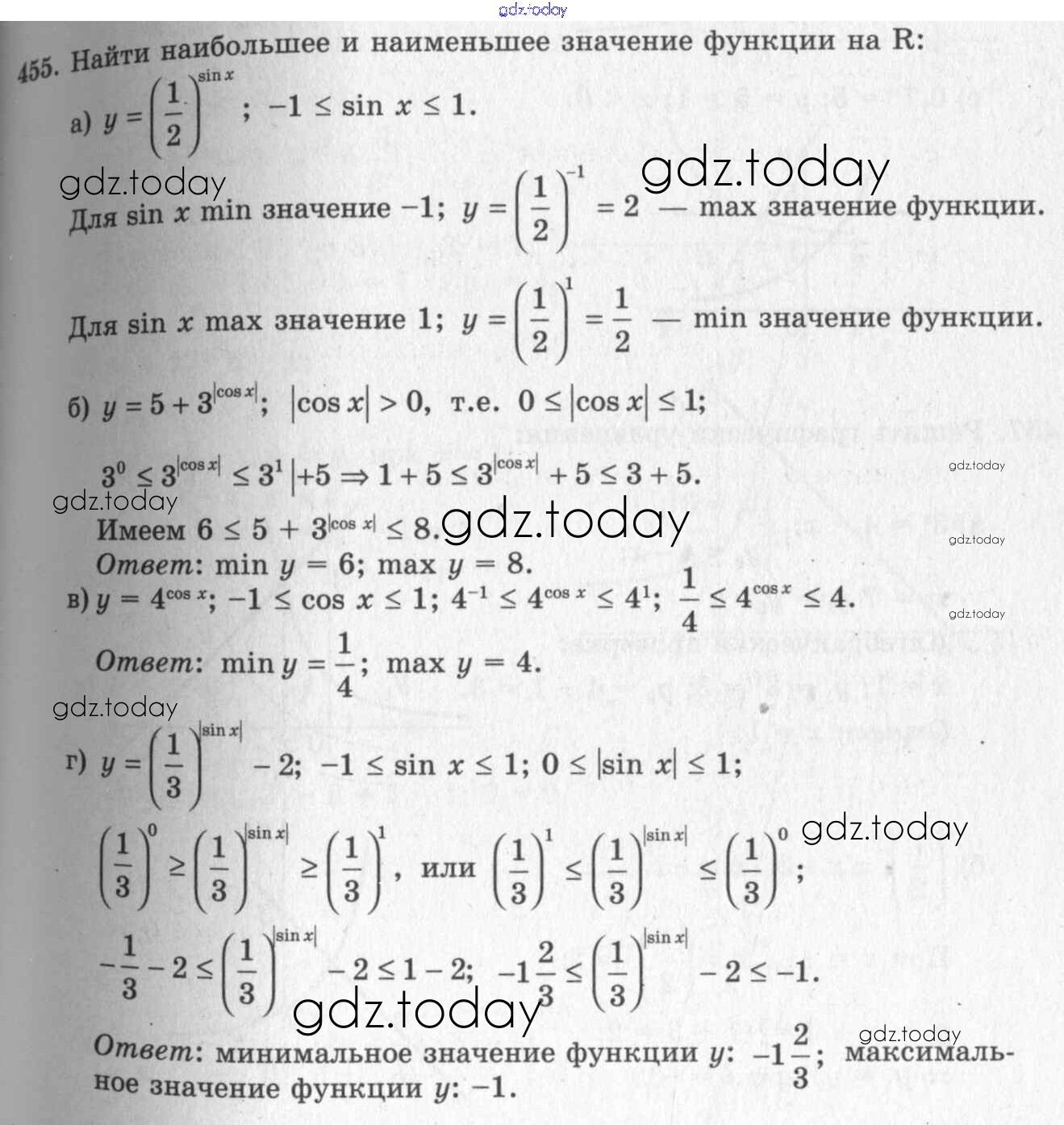 На страницах сайта gdz.today вы найдете учебный и вспомогательный материал, направленный на улучшения знаний школьной программы. ГДЗ - онлайн мир знаний Решения к упражнениям 455 Учебнику по Алгебре для 10-11 класса Колмогоров, Абрамов Просвещение 2008