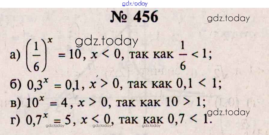 На страницах сайта gdz.today вы найдете учебный и вспомогательный материал, направленный на улучшения знаний школьной программы. ГДЗ - онлайн мир знаний Решения к упражнениям 456 Учебнику по Алгебре для 10-11 класса Колмогоров, Абрамов Просвещение 2008