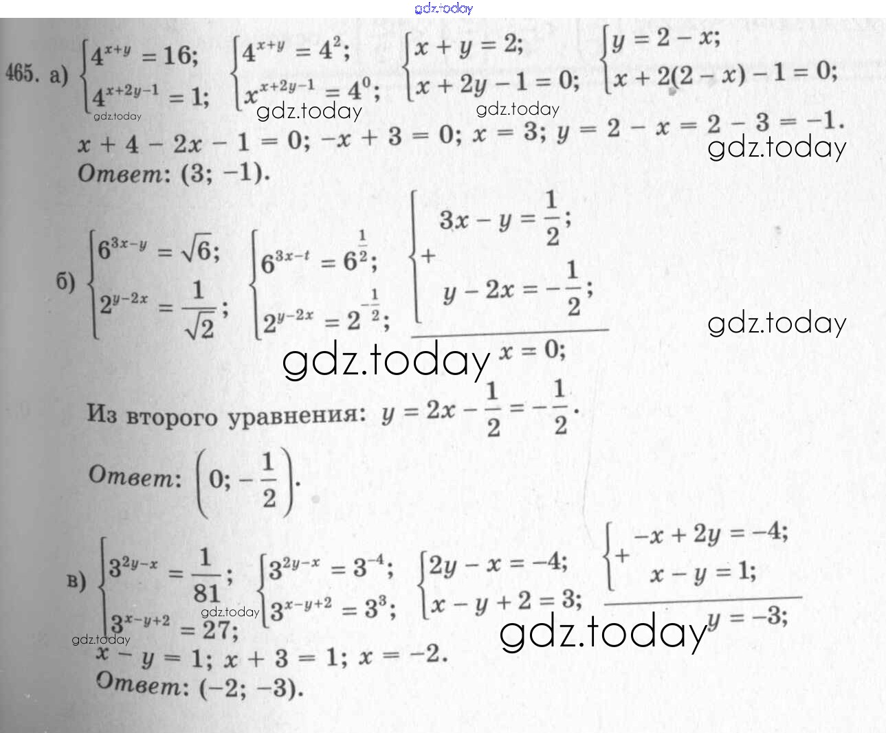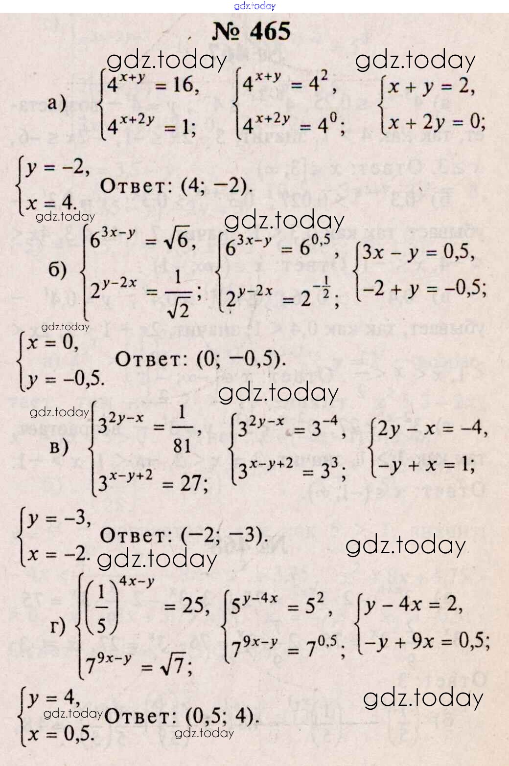 На страницах сайта gdz.today вы найдете учебный и вспомогательный материал, направленный на улучшения знаний школьной программы. ГДЗ - онлайн мир знаний Решения к упражнениям 465 Учебнику по Алгебре для 10-11 класса Колмогоров, Абрамов Просвещение 2008