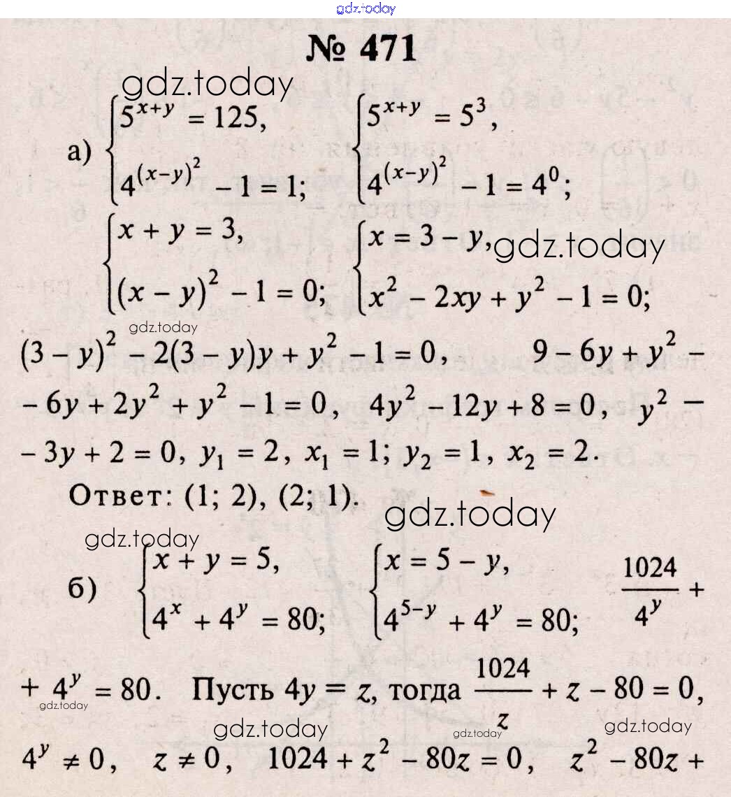 На страницах сайта gdz.today вы найдете учебный и вспомогательный материал, направленный на улучшения знаний школьной программы. ГДЗ - онлайн мир знаний Решения к упражнениям 471 Учебнику по Алгебре для 10-11 класса Колмогоров, Абрамов Просвещение 2008