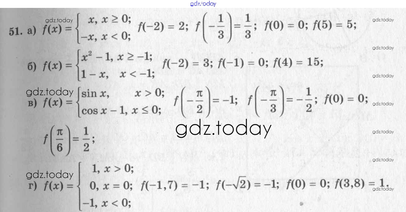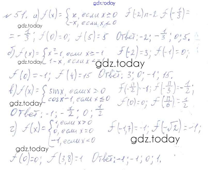 Ответы к Решения к упражнениям 51 Учебнику по Алгебре для 10-11 класса Колмогоров, Абрамов Просвещение 2008