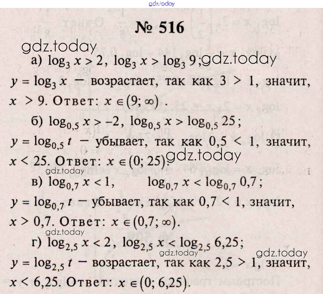 На страницах сайта gdz.today вы найдете учебный и вспомогательный материал, направленный на улучшения знаний школьной программы. ГДЗ - онлайн мир знаний Решения к упражнениям 516 Учебнику по Алгебре для 10-11 класса Колмогоров, Абрамов Просвещение 2008