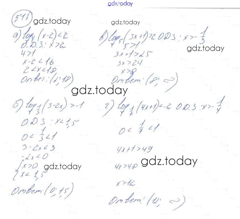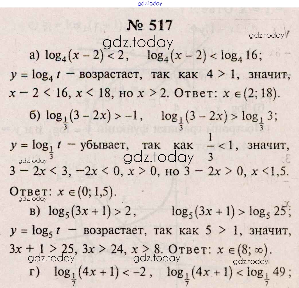 На страницах сайта gdz.today вы найдете учебный и вспомогательный материал, направленный на улучшения знаний школьной программы. ГДЗ - онлайн мир знаний Решения к упражнениям 517 Учебнику по Алгебре для 10-11 класса Колмогоров, Абрамов Просвещение 2008