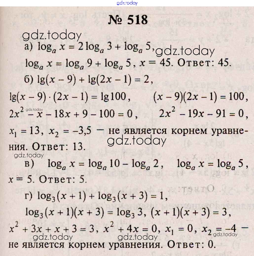 На страницах сайта gdz.today вы найдете учебный и вспомогательный материал, направленный на улучшения знаний школьной программы. ГДЗ - онлайн мир знаний Решения к упражнениям 518 Учебнику по Алгебре для 10-11 класса Колмогоров, Абрамов Просвещение 2008