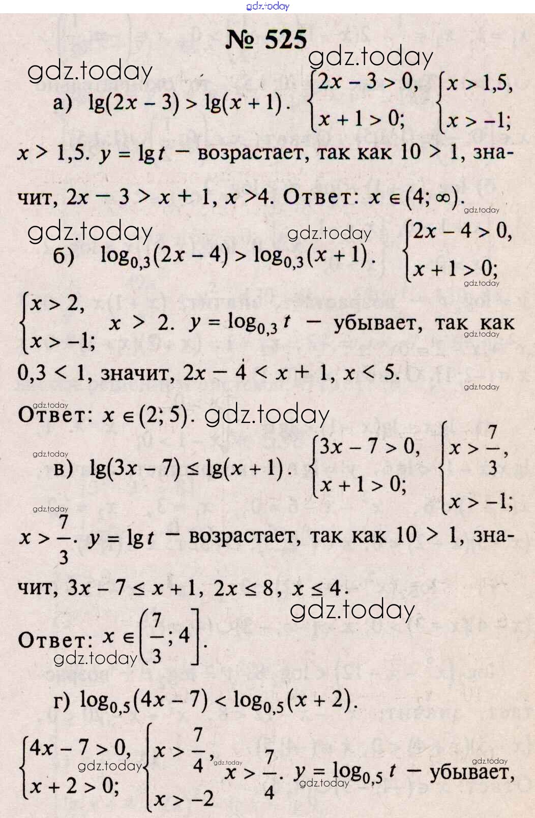Ответы к Решения к упражнениям 525 Учебнику по Алгебре для 10-11 класса Колмогоров, Абрамов Просвещение 2008