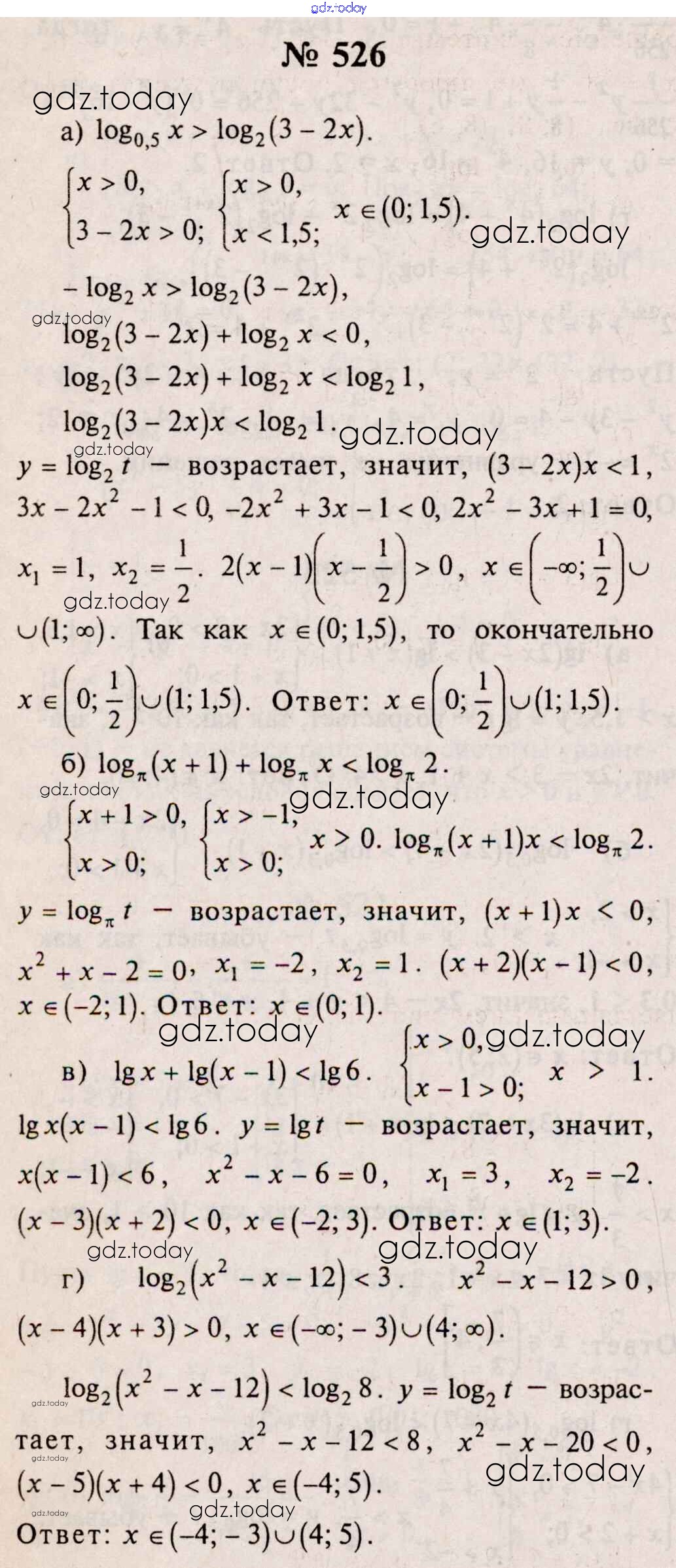 На страницах сайта gdz.today вы найдете учебный и вспомогательный материал, направленный на улучшения знаний школьной программы. ГДЗ - онлайн мир знаний Решения к упражнениям 526 Учебнику по Алгебре для 10-11 класса Колмогоров, Абрамов Просвещение 2008