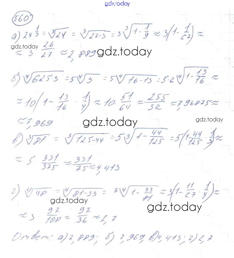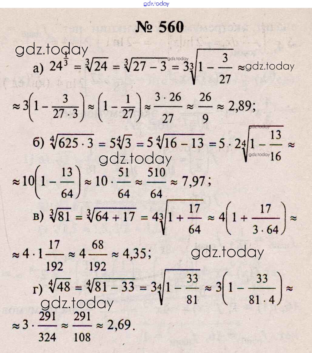 Ответы к Решения к упражнениям 560 Учебнику по Алгебре для 10-11 класса Колмогоров, Абрамов Просвещение 2008
