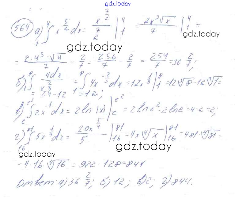 Ответы к Решения к упражнениям 564 Учебнику по Алгебре для 10-11 класса Колмогоров, Абрамов Просвещение 2008