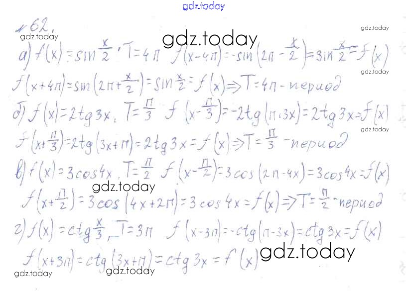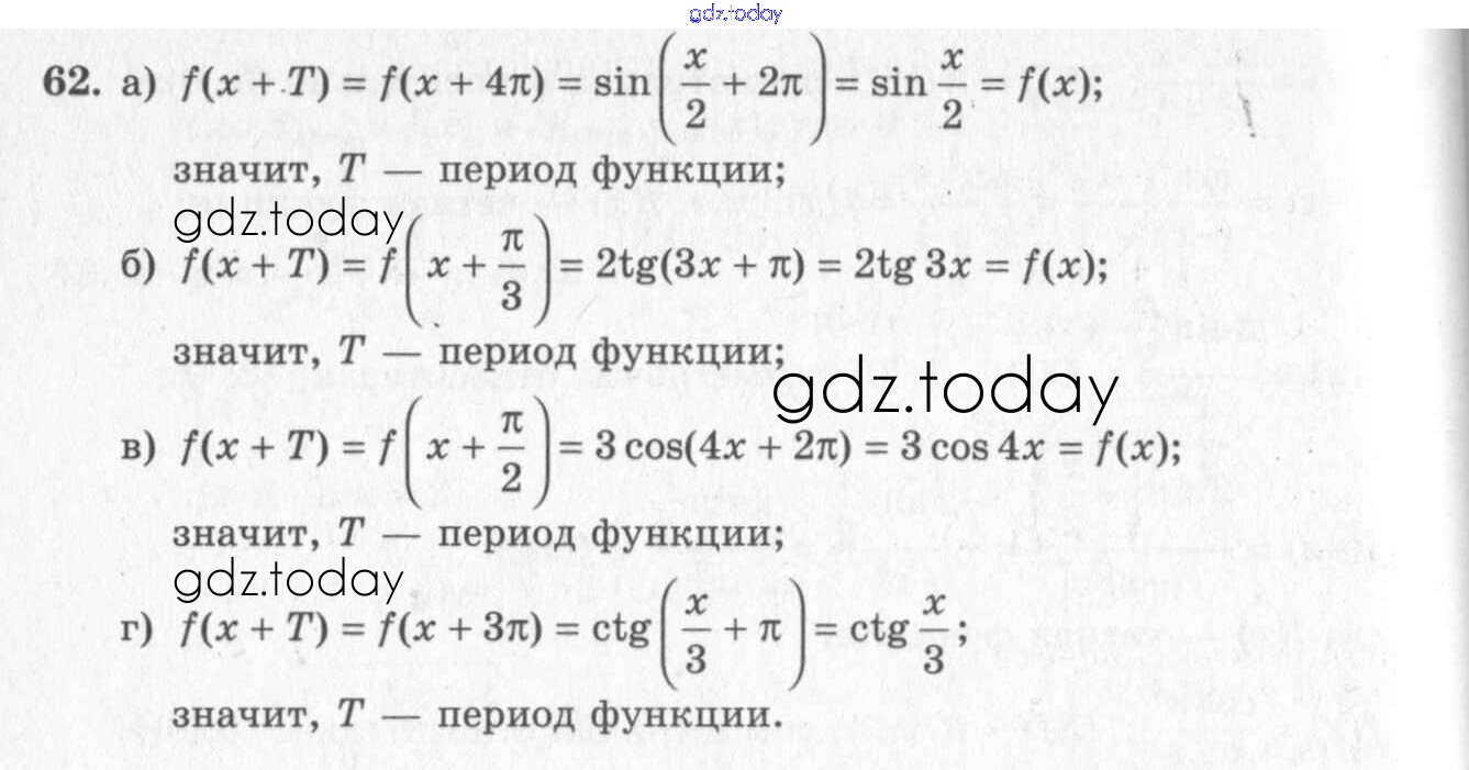 Ответы к Решения к упражнениям 62 Учебнику по Алгебре для 10-11 класса Колмогоров, Абрамов Просвещение 2008
