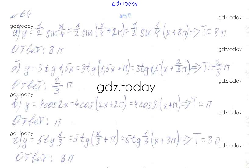 На страницах сайта gdz.today вы найдете учебный и вспомогательный материал, направленный на улучшения знаний школьной программы. ГДЗ - онлайн мир знаний Решения к упражнениям 64 Учебнику по Алгебре для 10-11 класса Колмогоров, Абрамов Просвещение 2008