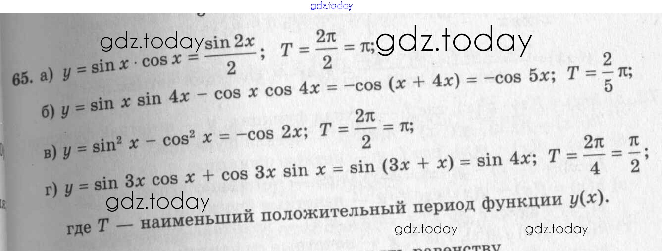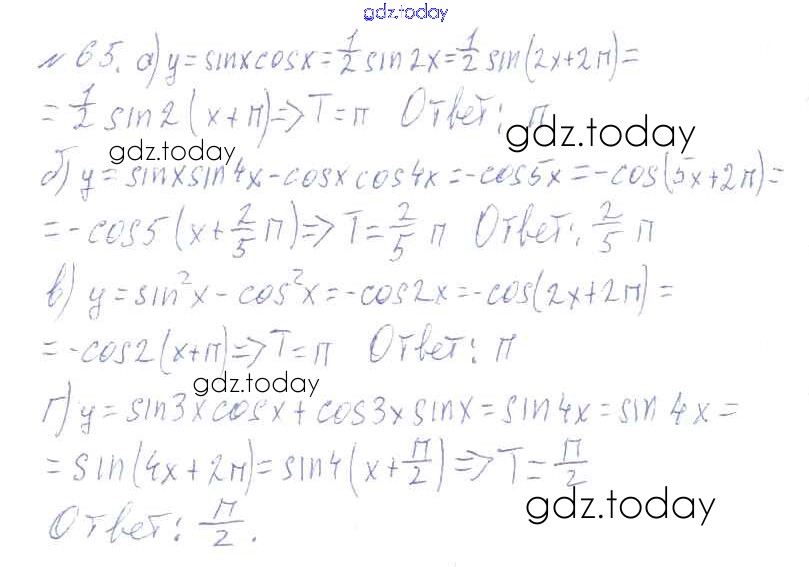 На страницах сайта gdz.today вы найдете учебный и вспомогательный материал, направленный на улучшения знаний школьной программы. ГДЗ - онлайн мир знаний Решения к упражнениям 65 Учебнику по Алгебре для 10-11 класса Колмогоров, Абрамов Просвещение 2008