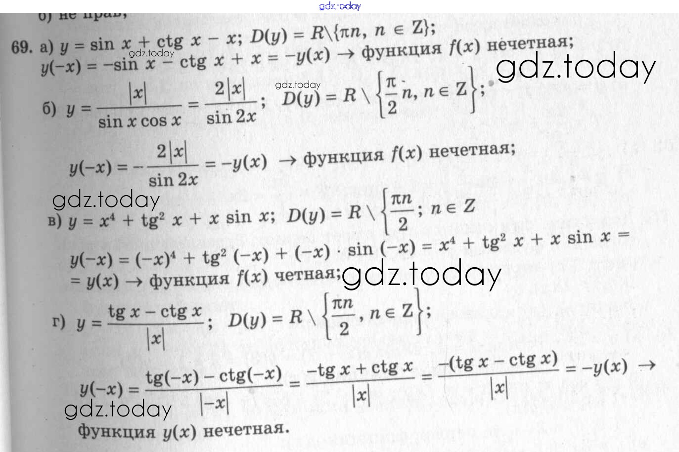 Ответы к Решения к упражнениям 69 Учебнику по Алгебре для 10-11 класса Колмогоров, Абрамов Просвещение 2008