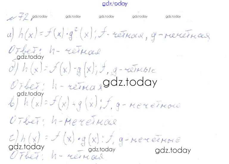 Ответы к Решения к упражнениям 72 Учебнику по Алгебре для 10-11 класса Колмогоров, Абрамов Просвещение 2008
