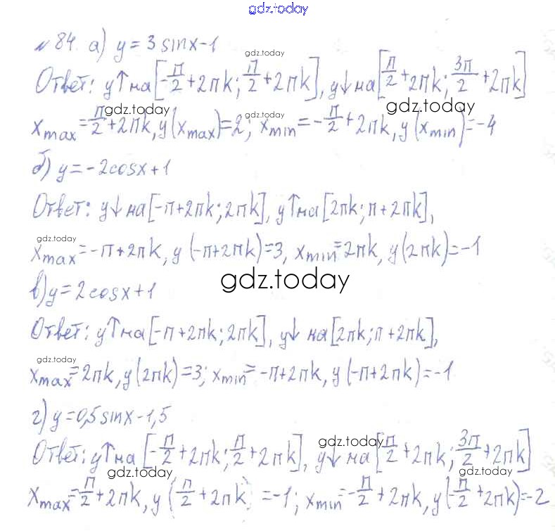 Ответы к Решения к упражнениям 84 Учебнику по Алгебре для 10-11 класса Колмогоров, Абрамов Просвещение 2008