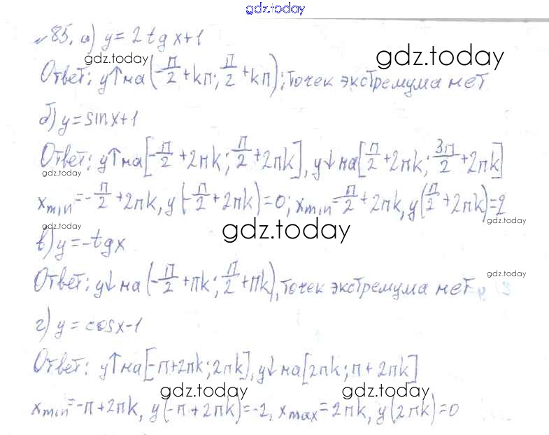 Ответы к Решения к упражнениям 85 Учебнику по Алгебре для 10-11 класса Колмогоров, Абрамов Просвещение 2008