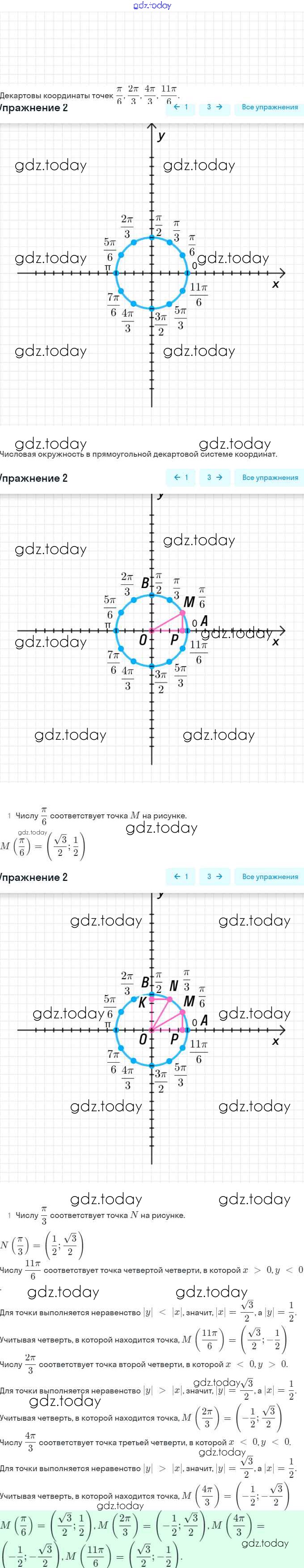 Ответы к Решение. §12. Числовая окружность на координатной плоскости 2 Учебнику по Алгебре для 10 класса Мордкович, Семёнов Базовый и углубленный уровень Мнемозина 2017