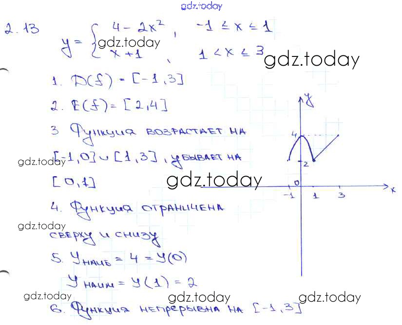 Ответы к §2. Свойства функций Глава 1 2. 13 Задачнику по Алгебре для 10-11 класса Мордкович, Денищева Базовый уровень Мнемозина 2015