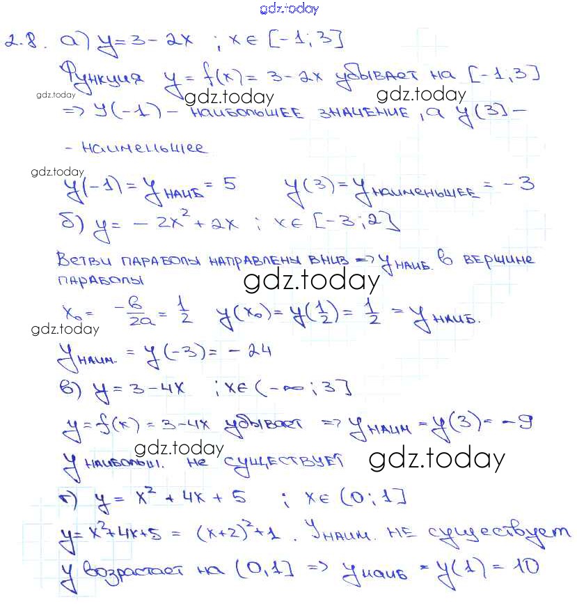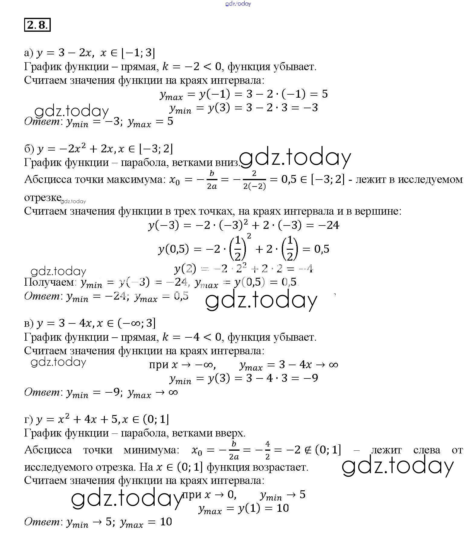 Ответы к §2. Свойства функций Глава 1 2. 8 Задачнику по Алгебре для 10-11 класса Мордкович, Денищева Базовый уровень Мнемозина 2015