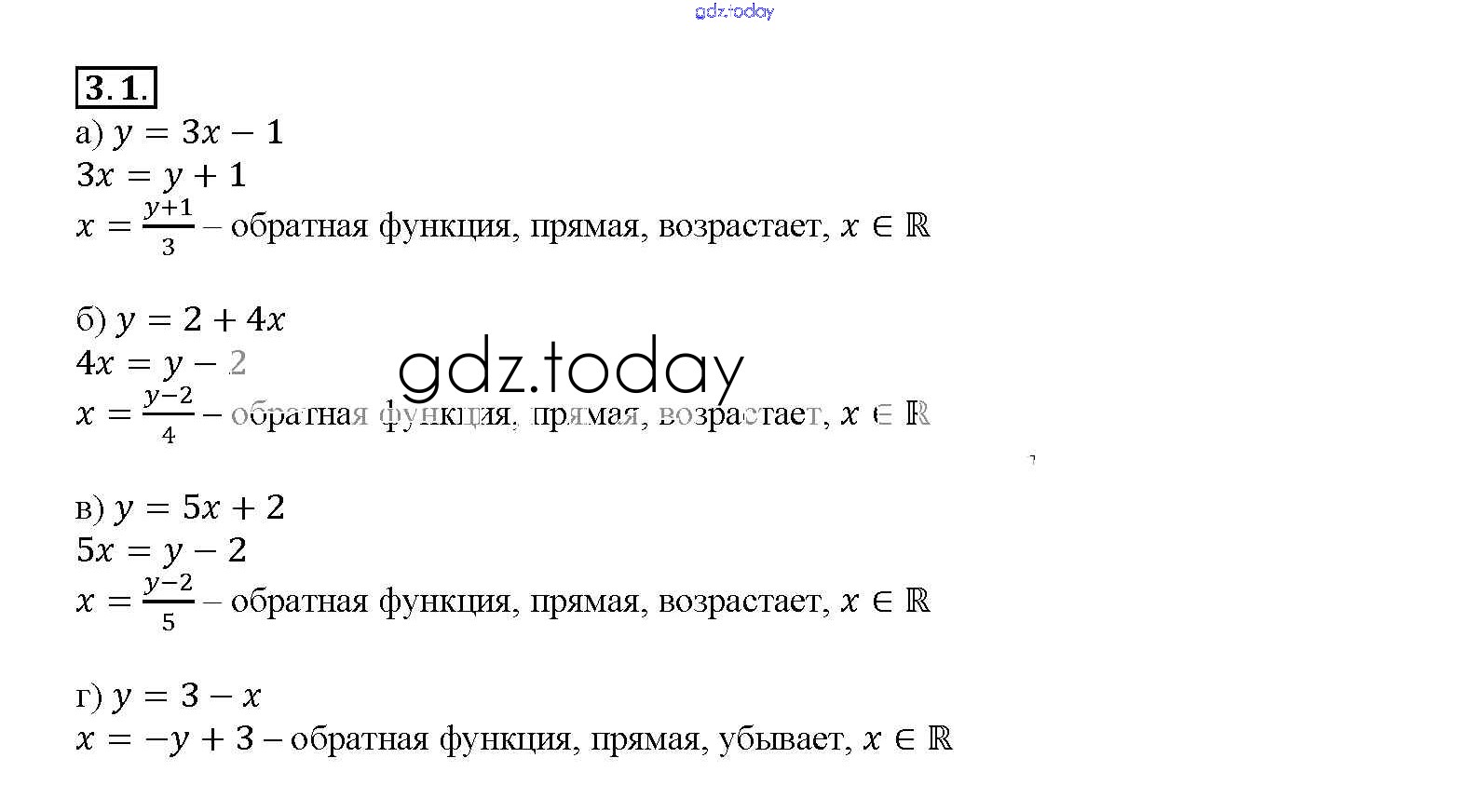 Ответы к §3. Обратная функция Глава 1 3. 1 Задачнику по Алгебре для 10-11 класса Мордкович, Денищева Базовый уровень Мнемозина 2015