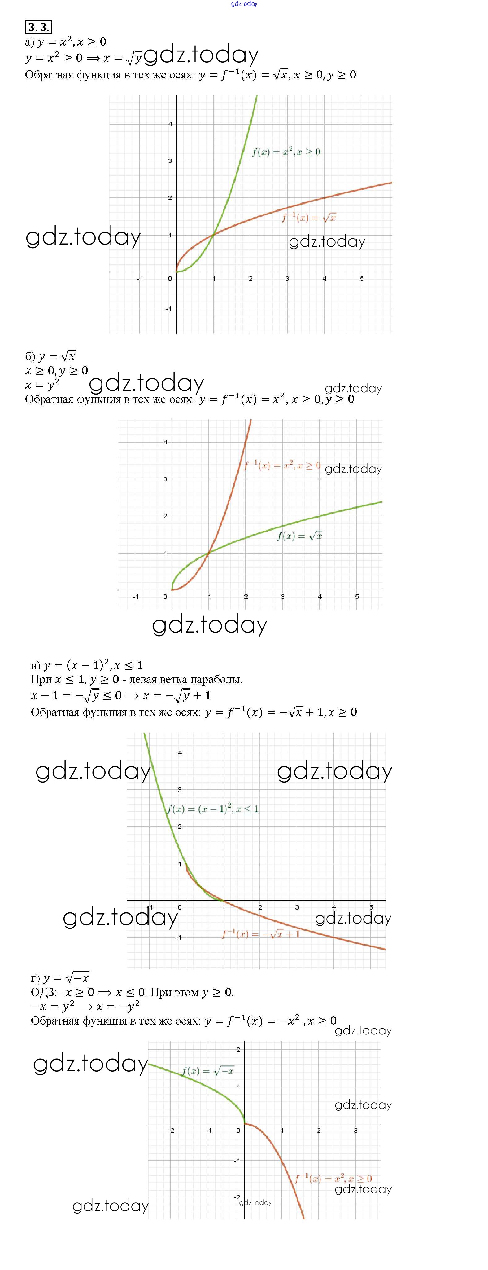Ответы к §3. Обратная функция Глава 1 3. 3 Задачнику по Алгебре для 10-11 класса Мордкович, Денищева Базовый уровень Мнемозина 2015