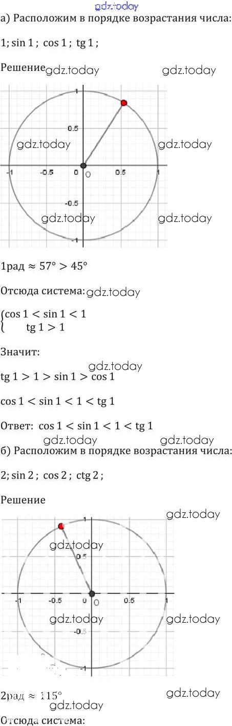 Ответы к §6. Синус и косинус. Тангенс и катангенс Глава 2 6. 42 Задачнику по Алгебре для 10-11 класса Мордкович, Денищева Базовый уровень Мнемозина 2015