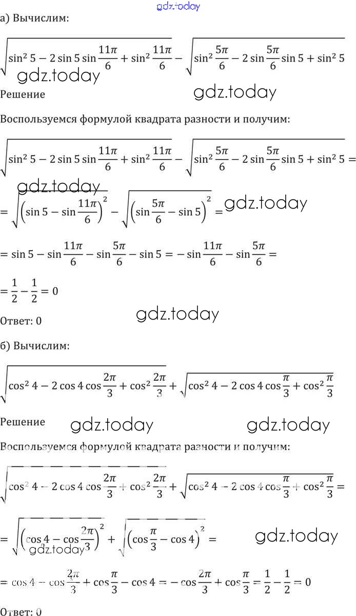Ответы к §6. Синус и косинус. Тангенс и катангенс Глава 2 6. 47 Задачнику по Алгебре для 10-11 класса Мордкович, Денищева Базовый уровень Мнемозина 2015