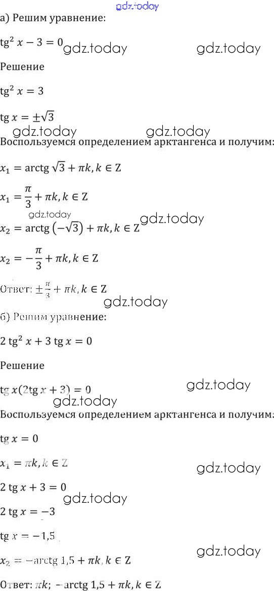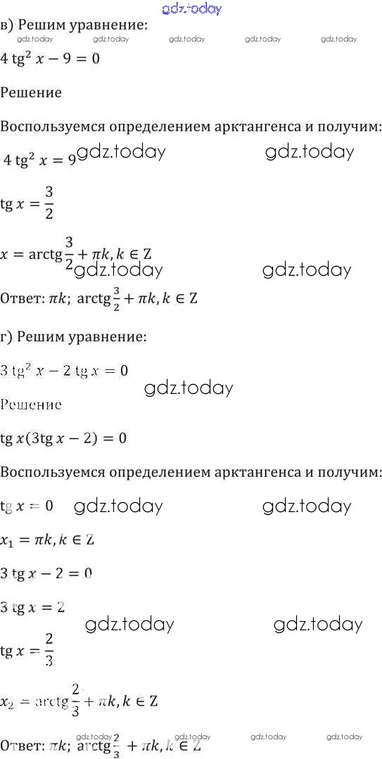 Ответы к §17. Арктангенс и арккотангенс Глава 3 17.13 Задачнику по Алгебре для 10-11 класса Мордкович, Денищева Базовый уровень Мнемозина 2015