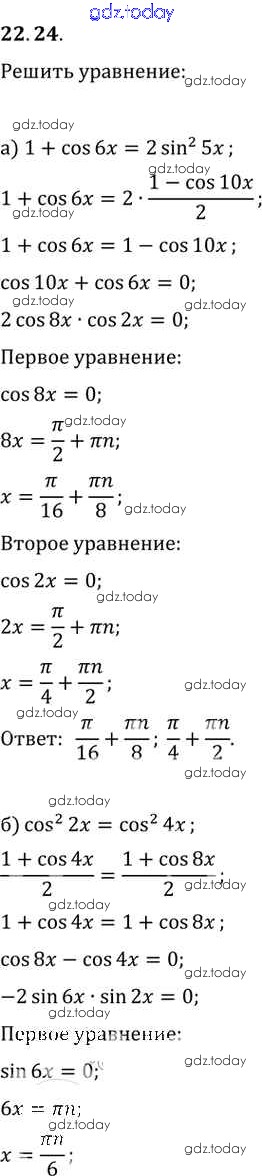 Ответы к §22. Преобразование суммы тригонометрических функций в произведения Глава 4 22.24 Задачнику по Алгебре для 10-11 класса Мордкович, Денищева Базовый уровень Мнемозина 2015
