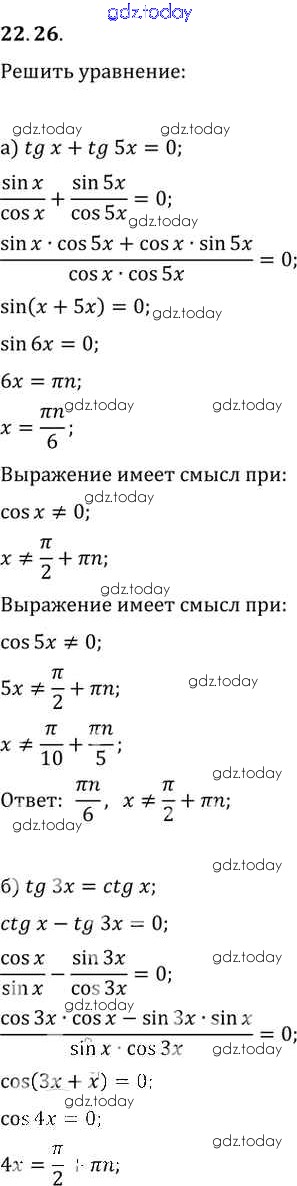 Ответы к §22. Преобразование суммы тригонометрических функций в произведения Глава 4 22.26 Задачнику по Алгебре для 10-11 класса Мордкович, Денищева Базовый уровень Мнемозина 2015