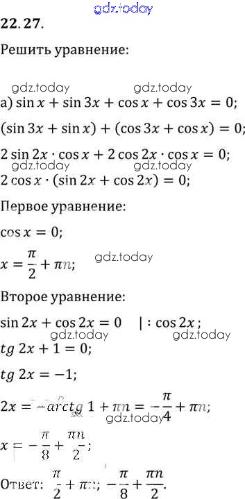 Ответы к §22. Преобразование суммы тригонометрических функций в произведения Глава 4 22.27 Задачнику по Алгебре для 10-11 класса Мордкович, Денищева Базовый уровень Мнемозина 2015