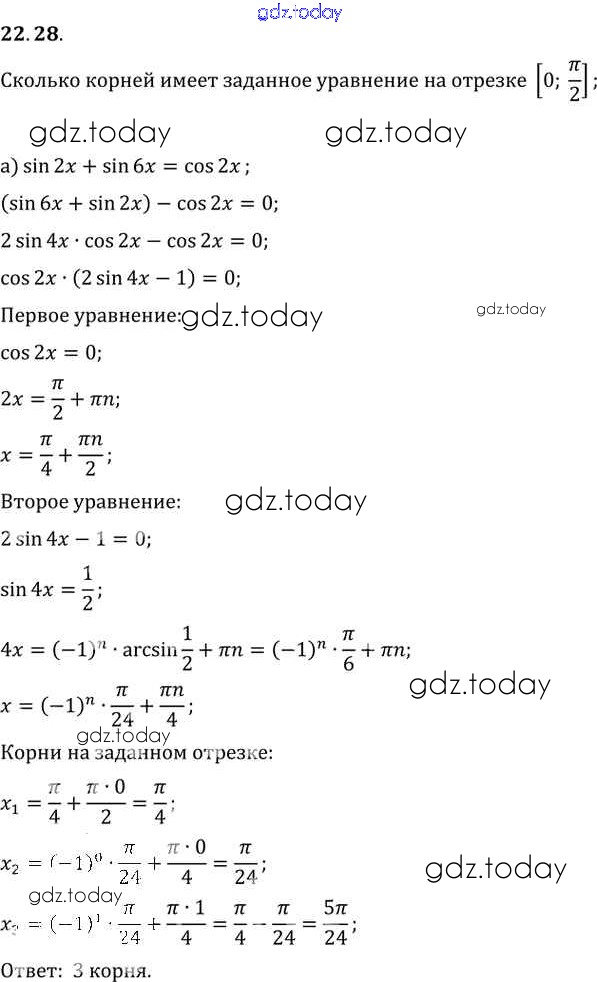 Ответы к §22. Преобразование суммы тригонометрических функций в произведения Глава 4 22.28 Задачнику по Алгебре для 10-11 класса Мордкович, Денищева Базовый уровень Мнемозина 2015
