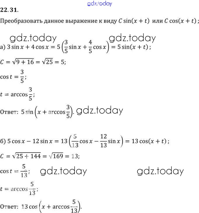 Ответы к §22. Преобразование суммы тригонометрических функций в произведения Глава 4 22.31 Задачнику по Алгебре для 10-11 класса Мордкович, Денищева Базовый уровень Мнемозина 2015