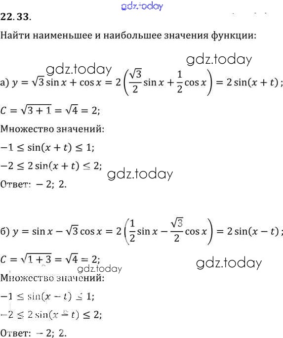 Ответы к §22. Преобразование суммы тригонометрических функций в произведения Глава 4 22.33 Задачнику по Алгебре для 10-11 класса Мордкович, Денищева Базовый уровень Мнемозина 2015