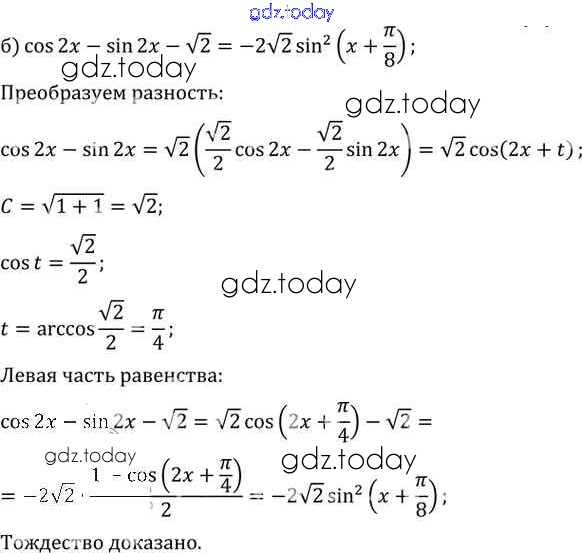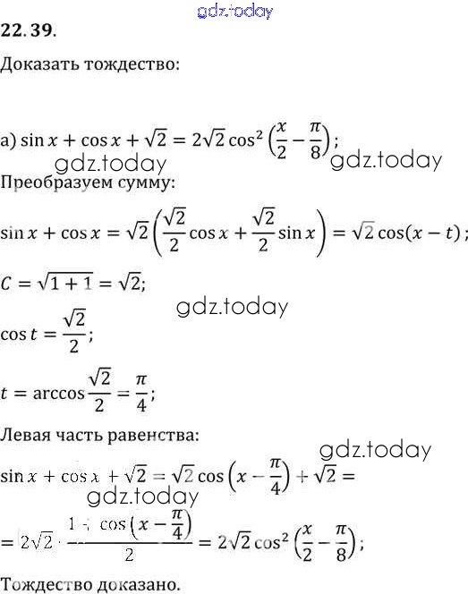 Ответы к §22. Преобразование суммы тригонометрических функций в произведения Глава 4 22.39 Задачнику по Алгебре для 10-11 класса Мордкович, Денищева Базовый уровень Мнемозина 2015