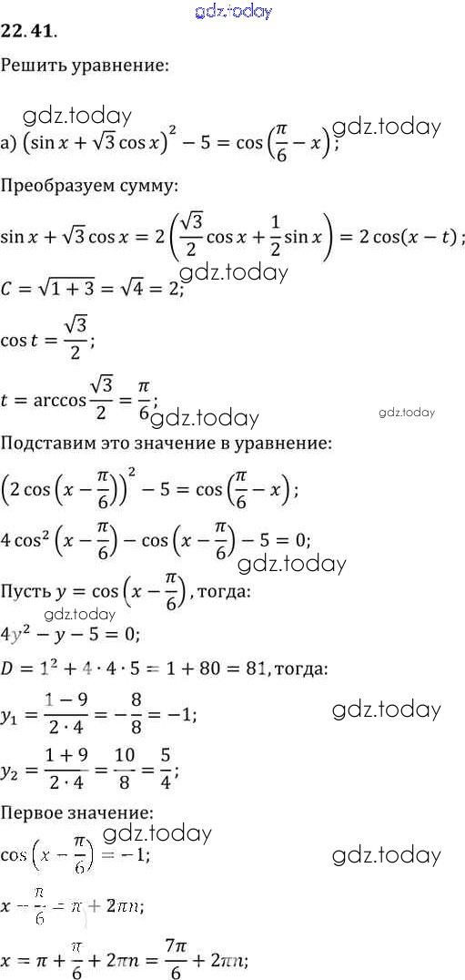 Ответы к §22. Преобразование суммы тригонометрических функций в произведения Глава 4 22.41 Задачнику по Алгебре для 10-11 класса Мордкович, Денищева Базовый уровень Мнемозина 2015