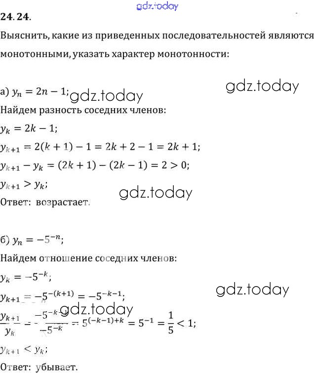 Ответы к §24. Предел последовательности Глава 5 24.24 Задачнику по Алгебре для 10-11 класса Мордкович, Денищева Базовый уровень Мнемозина 2015