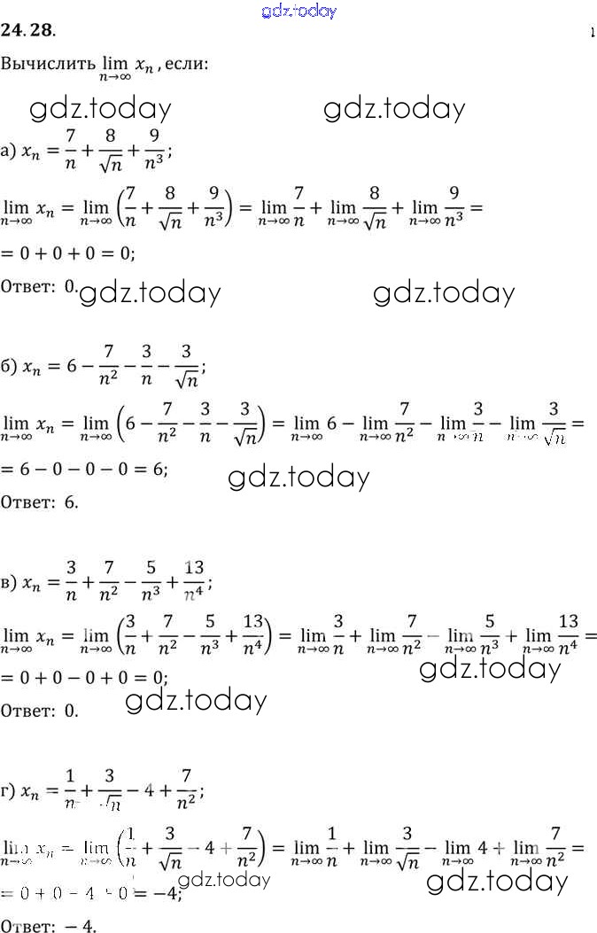 Ответы к §24. Предел последовательности Глава 5 24.28 Задачнику по Алгебре для 10-11 класса Мордкович, Денищева Базовый уровень Мнемозина 2015