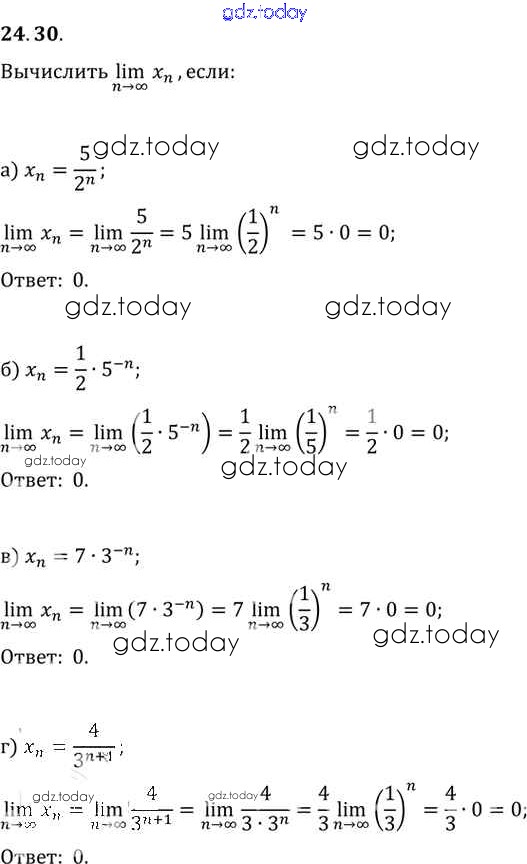 Ответы к §24. Предел последовательности Глава 5 24.30 Задачнику по Алгебре для 10-11 класса Мордкович, Денищева Базовый уровень Мнемозина 2015