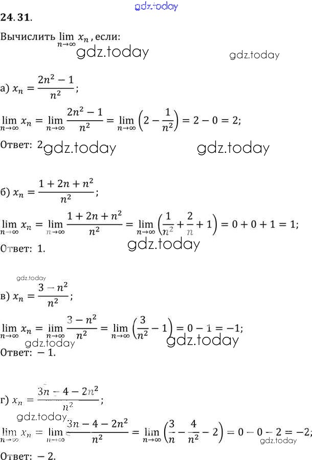 Ответы к §24. Предел последовательности Глава 5 24.31 Задачнику по Алгебре для 10-11 класса Мордкович, Денищева Базовый уровень Мнемозина 2015