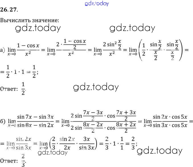 Ответы к §26. Предел функции Глава 5 26.27 Задачнику по Алгебре для 10-11 класса Мордкович, Денищева Базовый уровень Мнемозина 2015