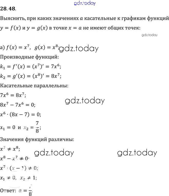 Ответы к §28. Вычисление производных Глава 5 28.48 Задачнику по Алгебре для 10-11 класса Мордкович, Денищева Базовый уровень Мнемозина 2015