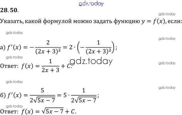 Ответы к §28. Вычисление производных Глава 5 28.50 Задачнику по Алгебре для 10-11 класса Мордкович, Денищева Базовый уровень Мнемозина 2015